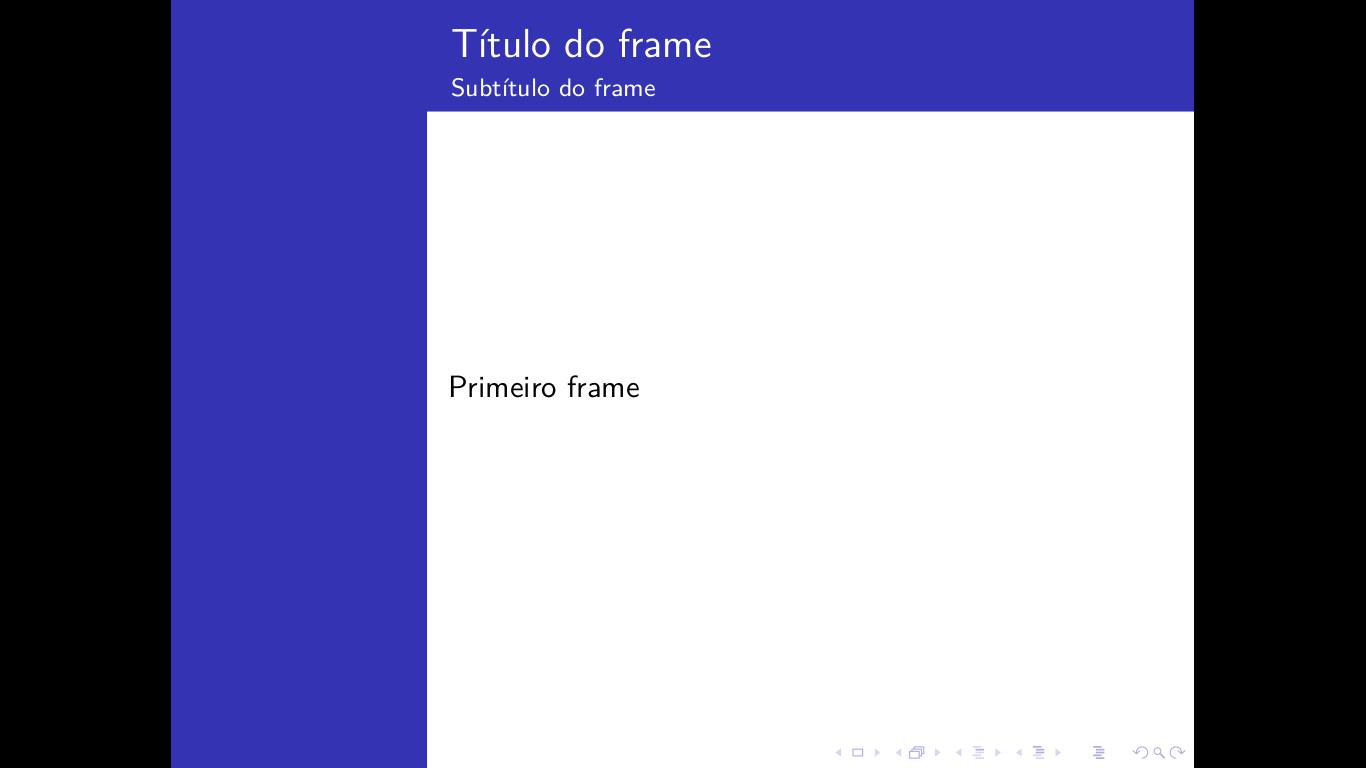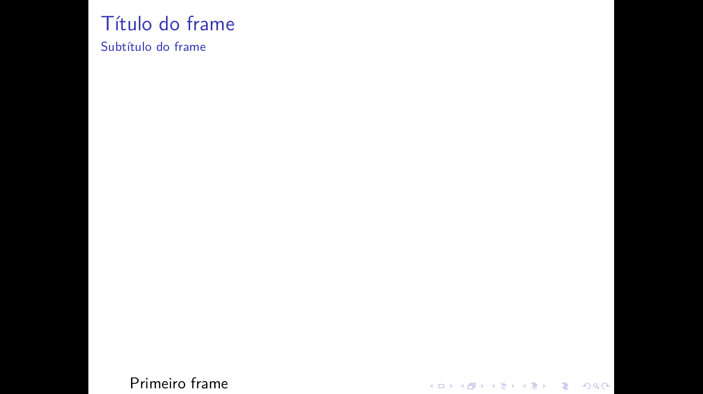 A primeira coisa a fazer para criar uma apresentação no Beamer é definir a classe do documento como sendo beamer. As apresentações do Beamer são criadas com frames.