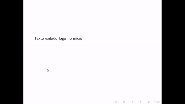 Com esse comando, os slides que estão cobertos ficam transparentes. Em qualquer uma das formas, o Beamer sempre