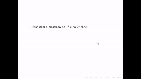 \item<1-2> Esse item é mostrado no 1º e no 2º slide;
