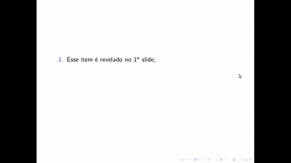 É muito comum ver apresentações onde o conteúdo de um frame aparece gradualmente. Isso pode ser feito no Beamer