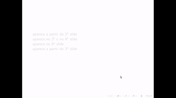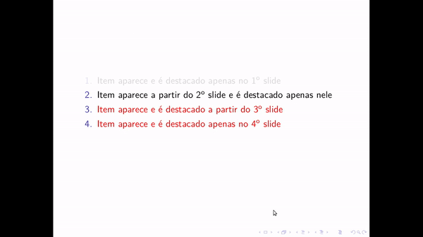\item<4> Esse item é mostrado apenas no 4º slide.