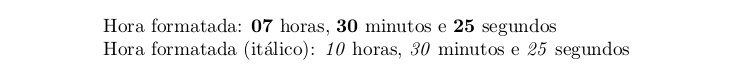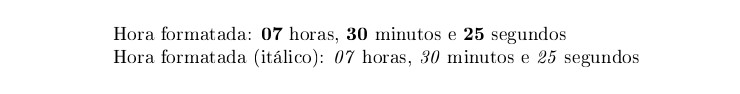 Hora formatada (itálico): \horaformatada[\textit]{07}{30}{25}