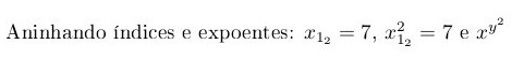 Aninhando índices e expoentes: \(x_{1_2} = 7 \), \(x^2_{1_2} = 7 \) e \(x^{y^2}\)