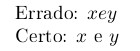 Não coloque coisas que não forem matemáticas, dentro de comandos de expressões matemáticas.