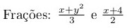 Frações: \(\frac{x + y^2}{3} \) e \(\frac{x + 4}{2}\)