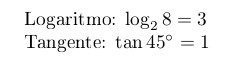 No LaTeX, quando você quiser escrever alguma função matemática, como log de logaritmo, e tan, de tangente, não escreva simplesmente log ou tan.