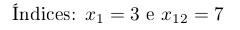 Índices: \(x_1 = 3 \) e \(x_{12} = 7 \)