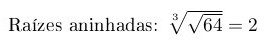 Raízes: \(\sqrt{9} = 3\) e \(\sqrt[3]{8} = 2\)