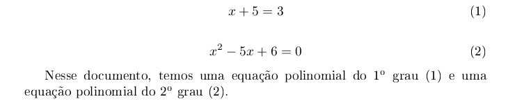 Você pode querer numerar expressões matemáticas que ficam em destaque, para que você possa referenciá-las. Para