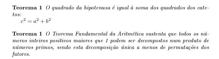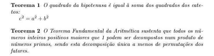 argumentos obrigatórios. O primeiro é o nome do ambiente para criar o teorema e o segundo é o nome que os