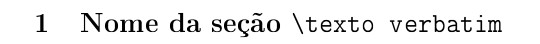 \section{Nome da seção \verb|texto verbatim|}